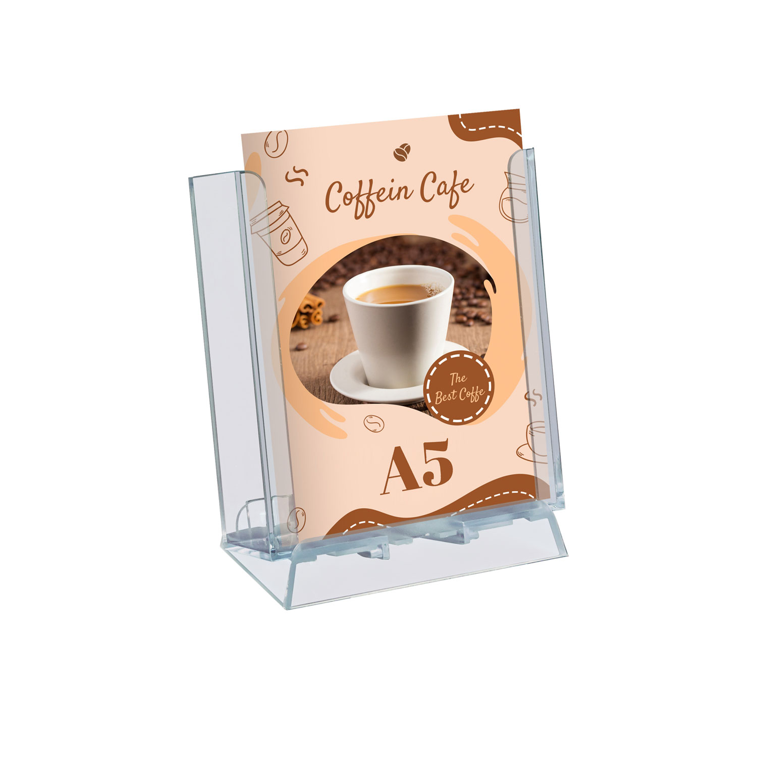 • Impact and stretchresistant desktop clear injection mold brochure holder.