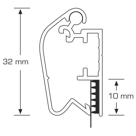 - 32 mm. wide silver anodised aluminum one bottom and one top profiles in E6/EV1.