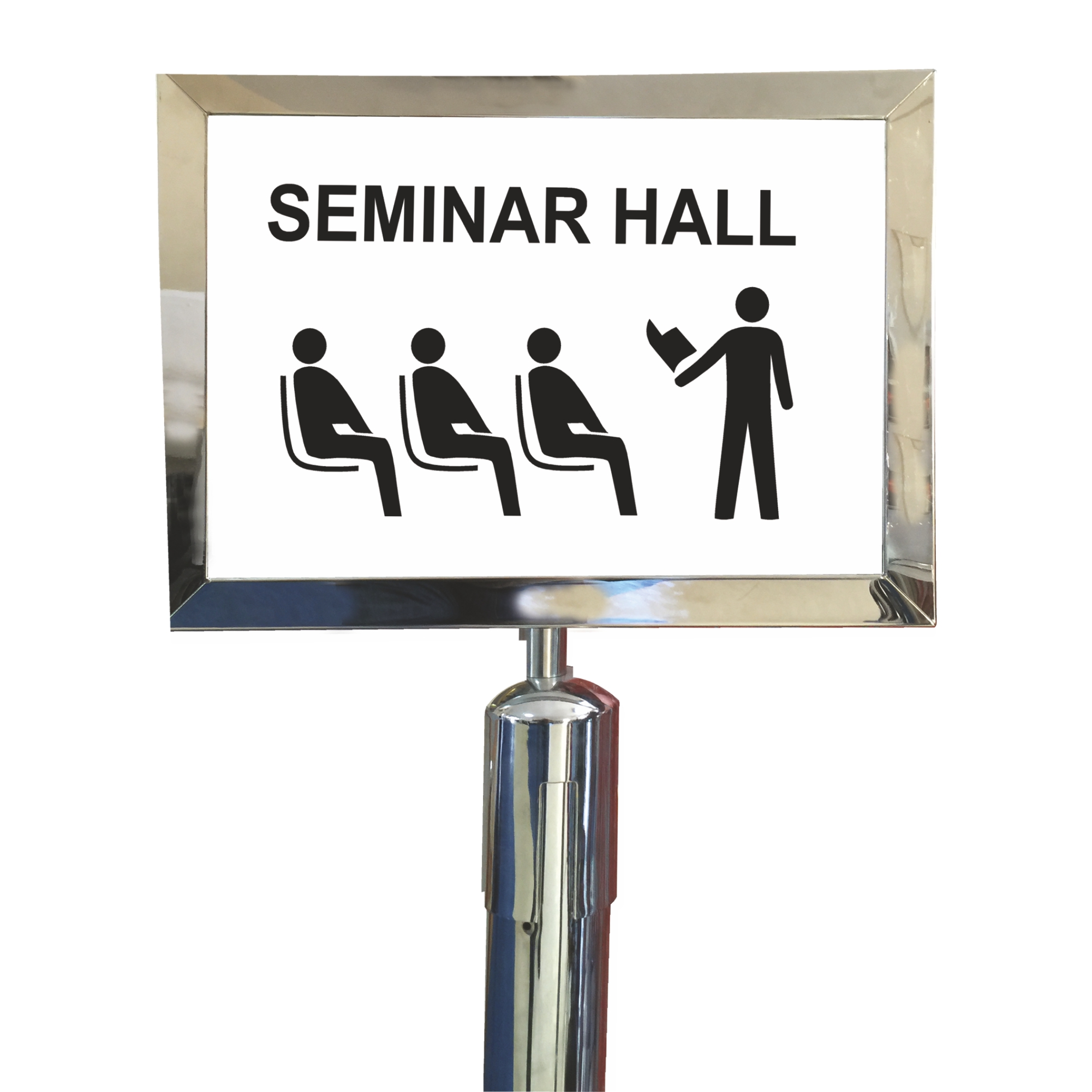 Barrier Direction Frame performs the same functions. Alongside the belt system, it includes a A4 frame for your visuals. Cinemas, banks, receptions or retail cashiers usually use barrier post and sign holder combinations.
