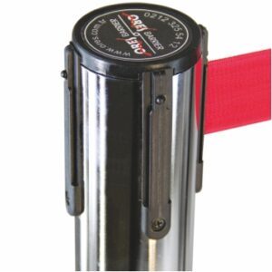 Belt Barriers has a chromium-plated aluminum structure. We have silver and black body colour options. Durable belts with a high-quality strengthened mechanism are 2300 mm long and 45 mm wide. They have red, blue, and black options, and if requested, we make brand printing on belts.