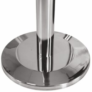 Pole is 940 mm in height, and the base is 64 in diameter. The retractable belt system is 4-way usable and locked.