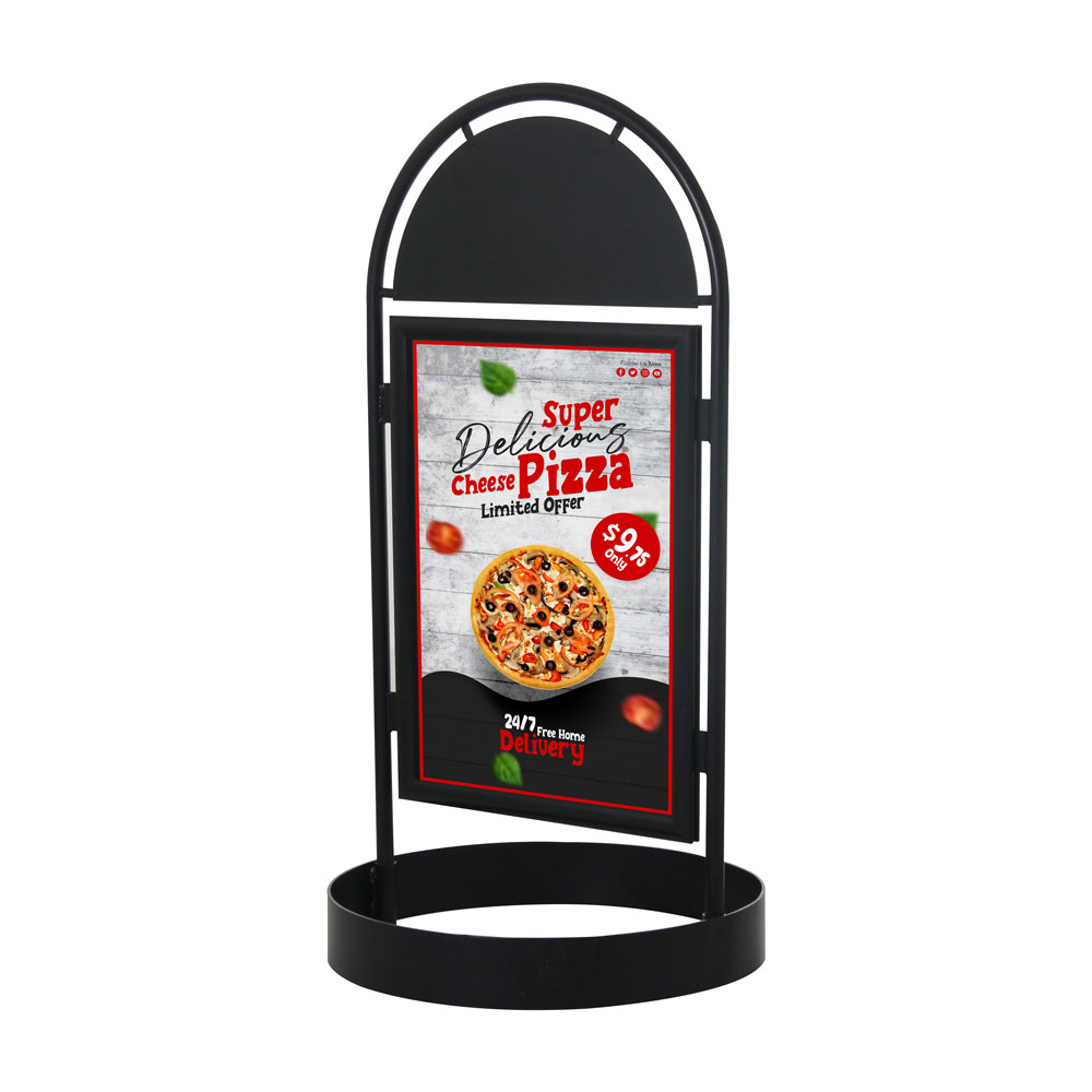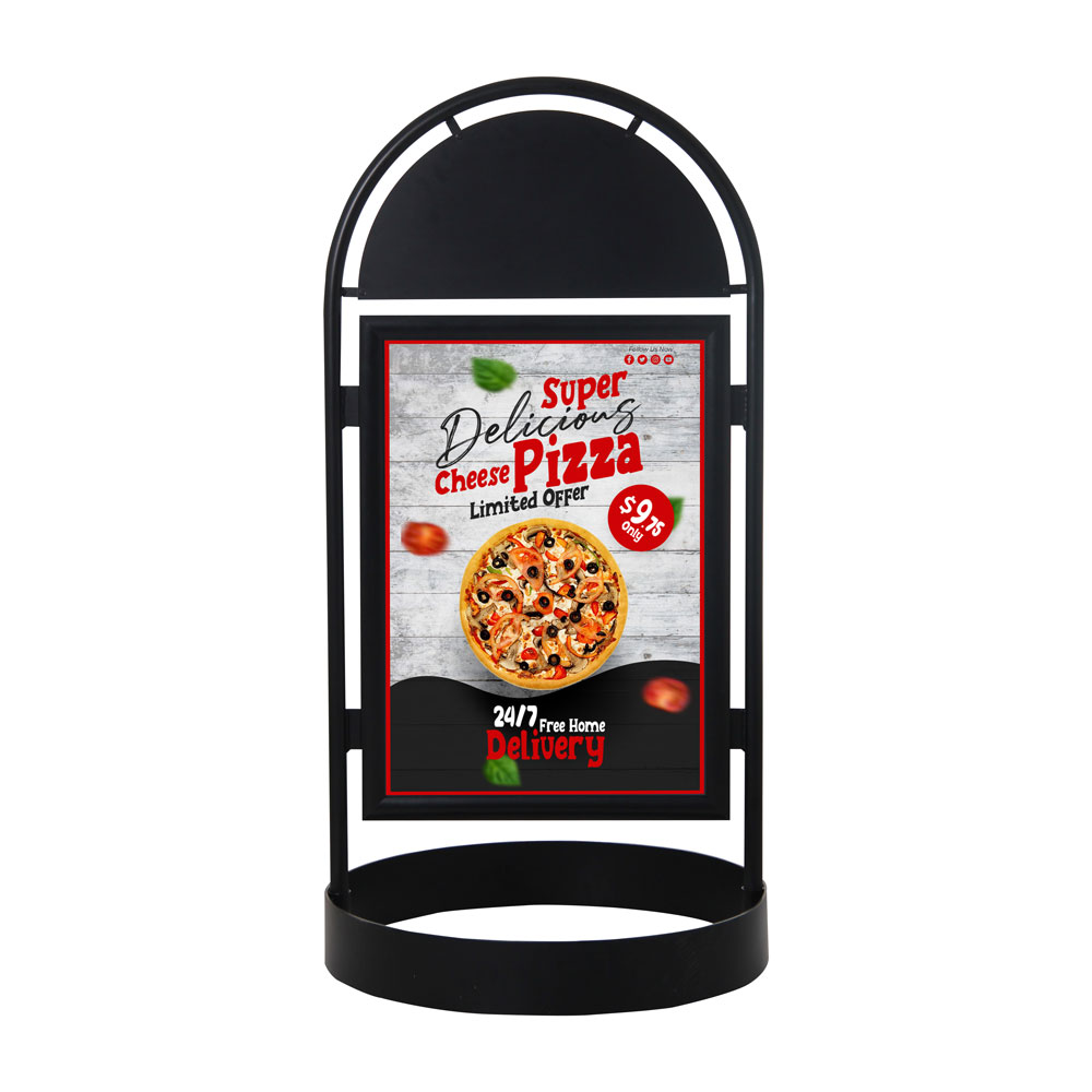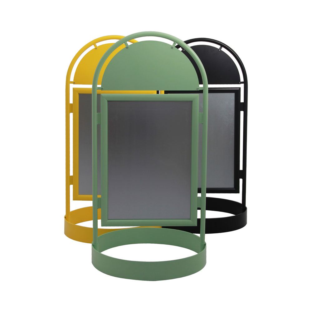 City Sign with header features snap-edge frames on either side, you can display and change any poster or advertisement in a few seconds and capture the attention of passers-by from both directions.