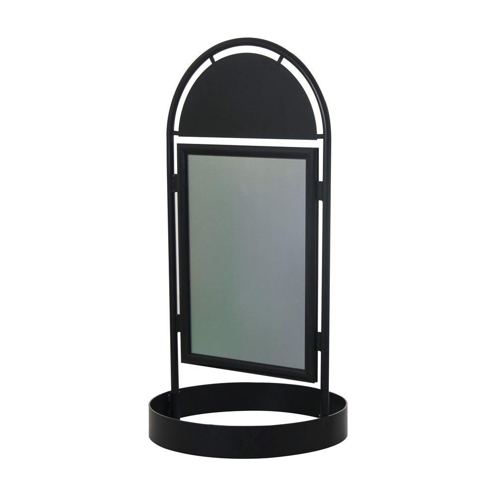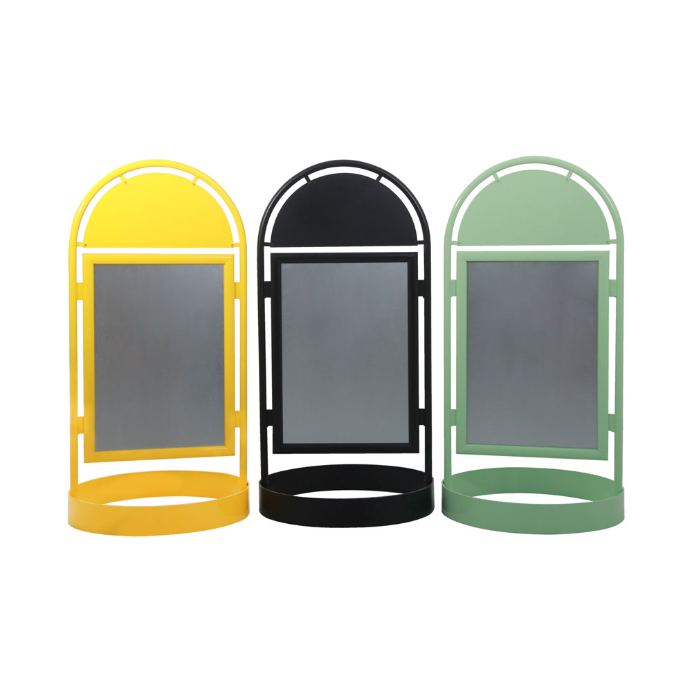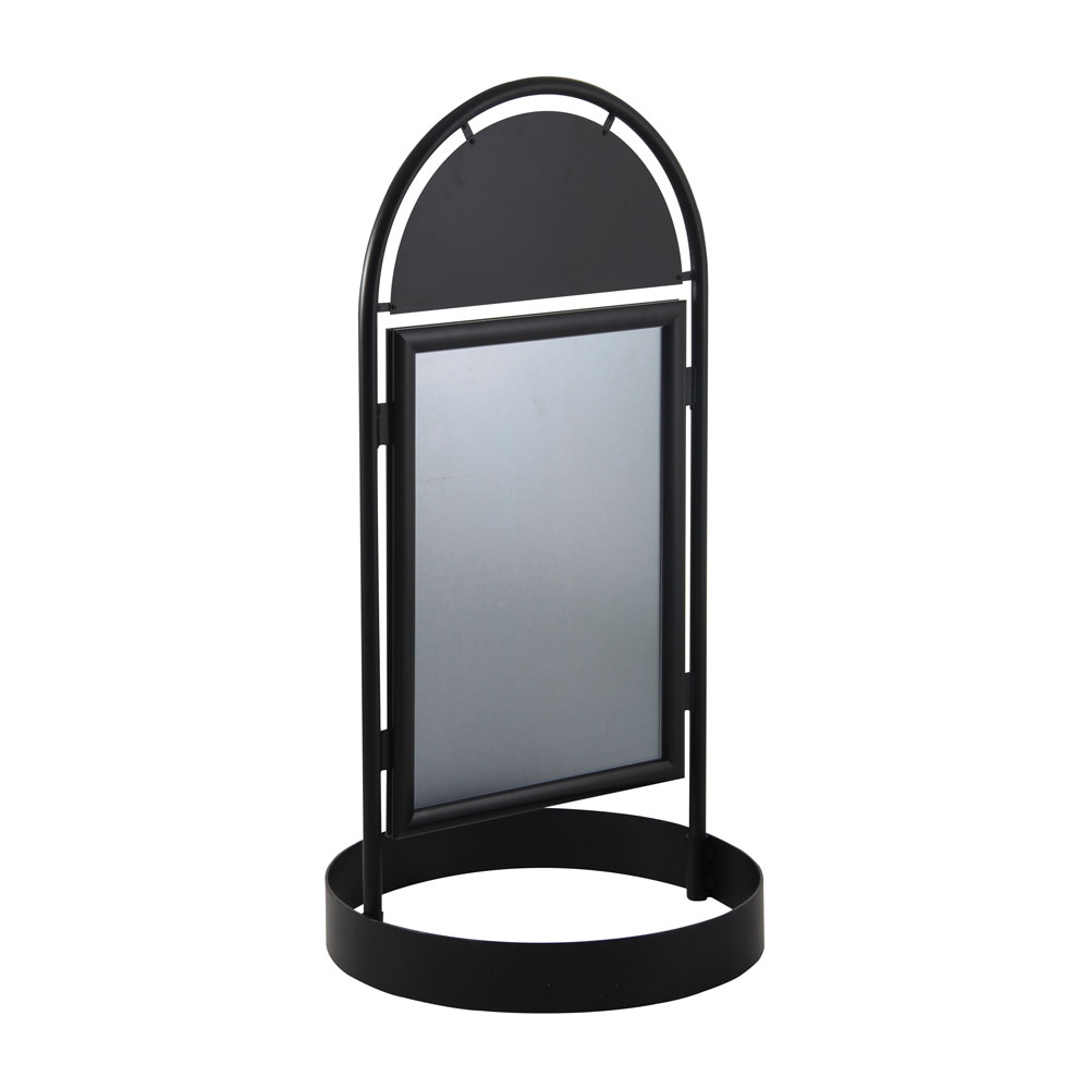 This retro poster board has a country design with snap frames and a semi-circle magnetic logo plate. On the other hand, a thick circle base provides an aesthetic presentation and comfort for sight-disabled people.