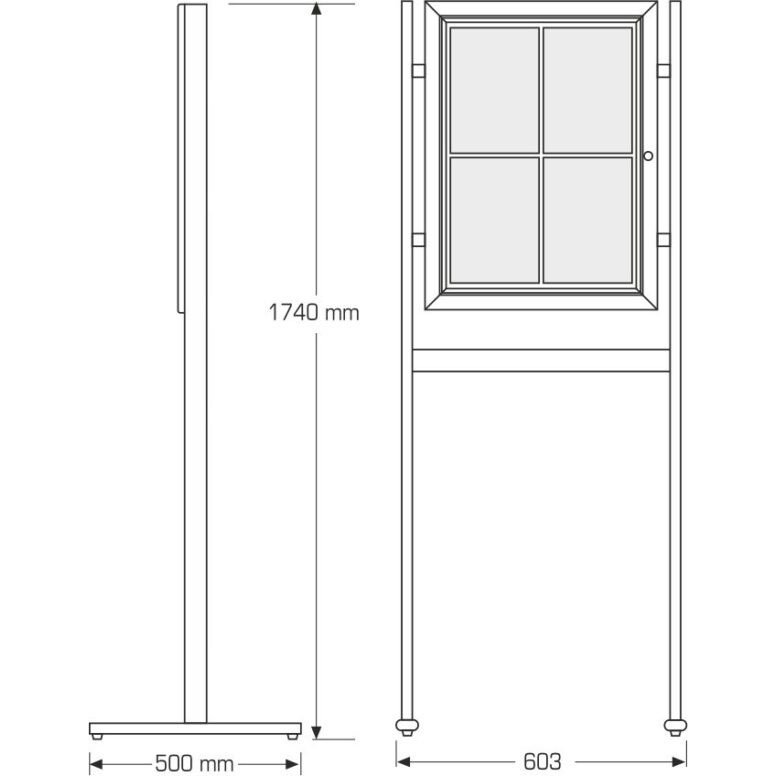 We offer standard dimension options 4xA4 and 6xA4 alongside custom sizes. We have single-sided and double-sided options and add wheels for easy transportation. Moreover, if requested, we design an LED illuminated cork freestanding noticeboard if you want.
