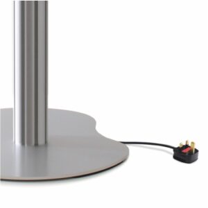 • Heavy duty steel base finished silver with rubber foot pads – 464 mm diameter.