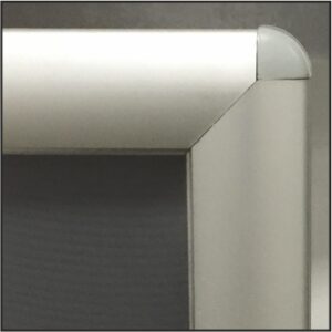 - 35 mm wide silver anodised aluminium snap frame profiles in E6/EV1 or RAL colors with mitred corners.