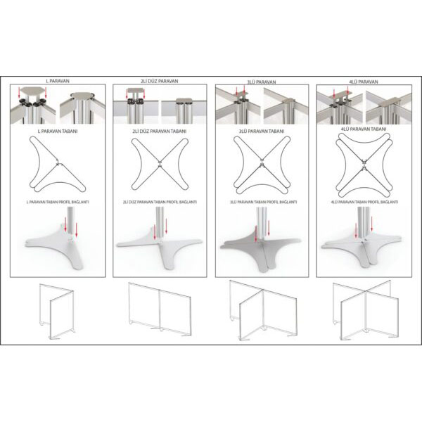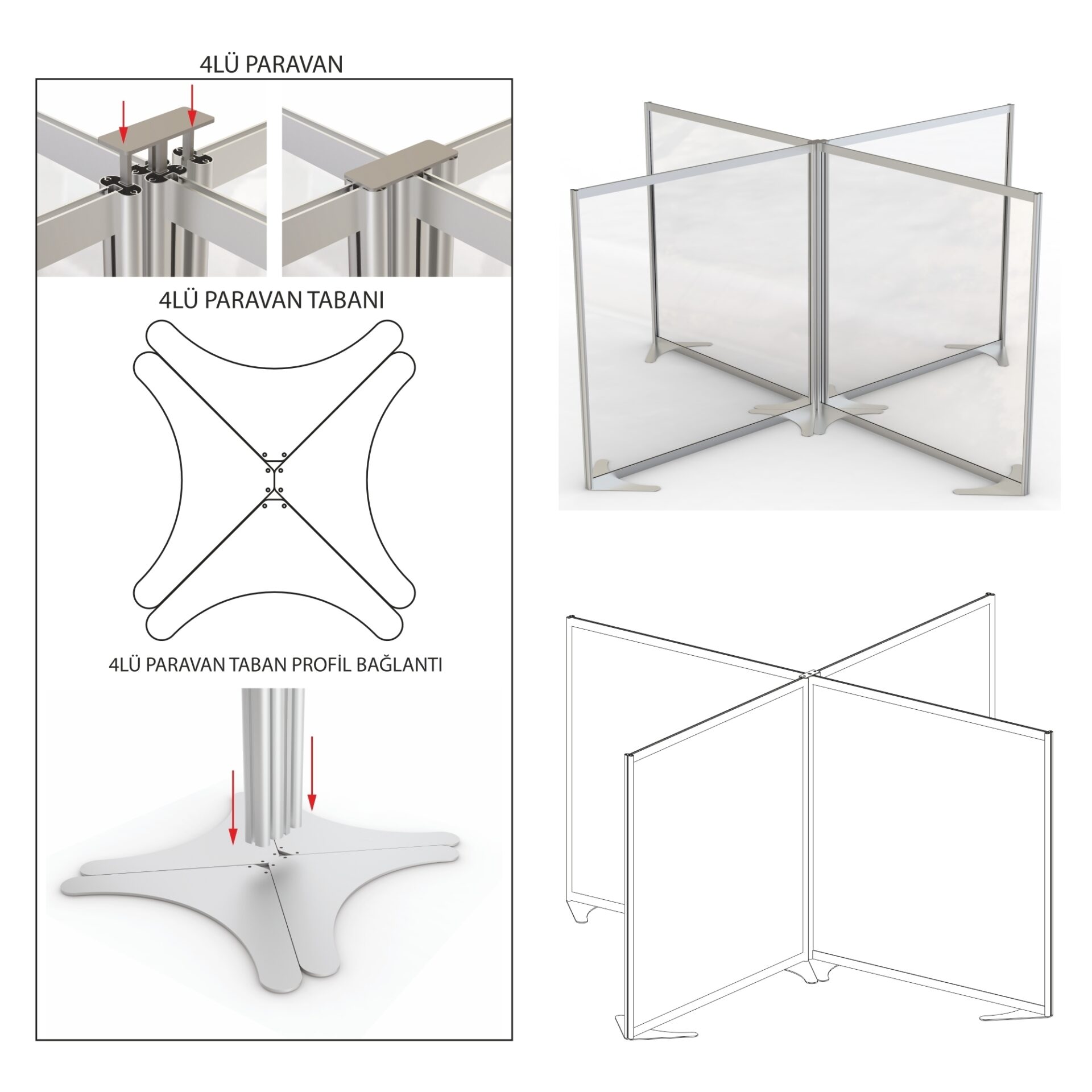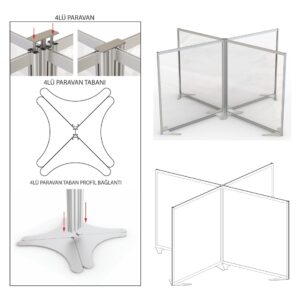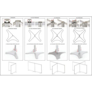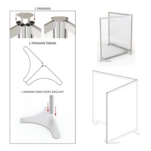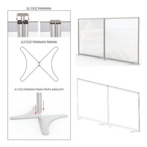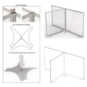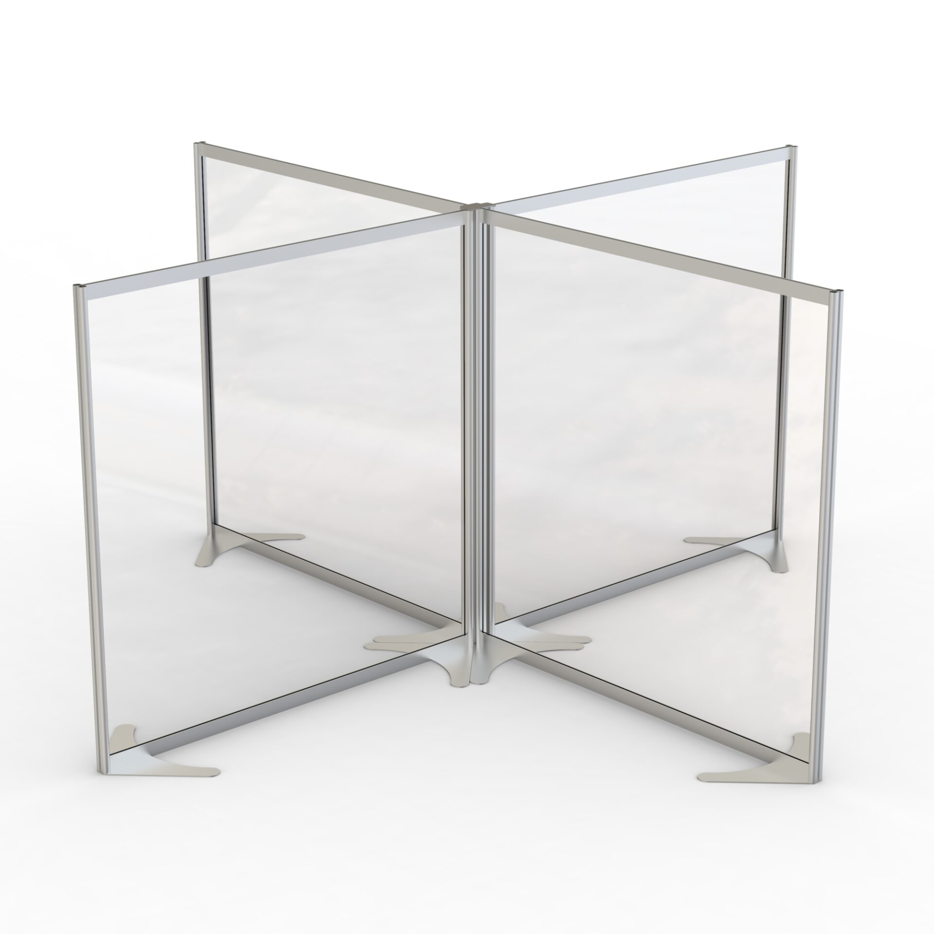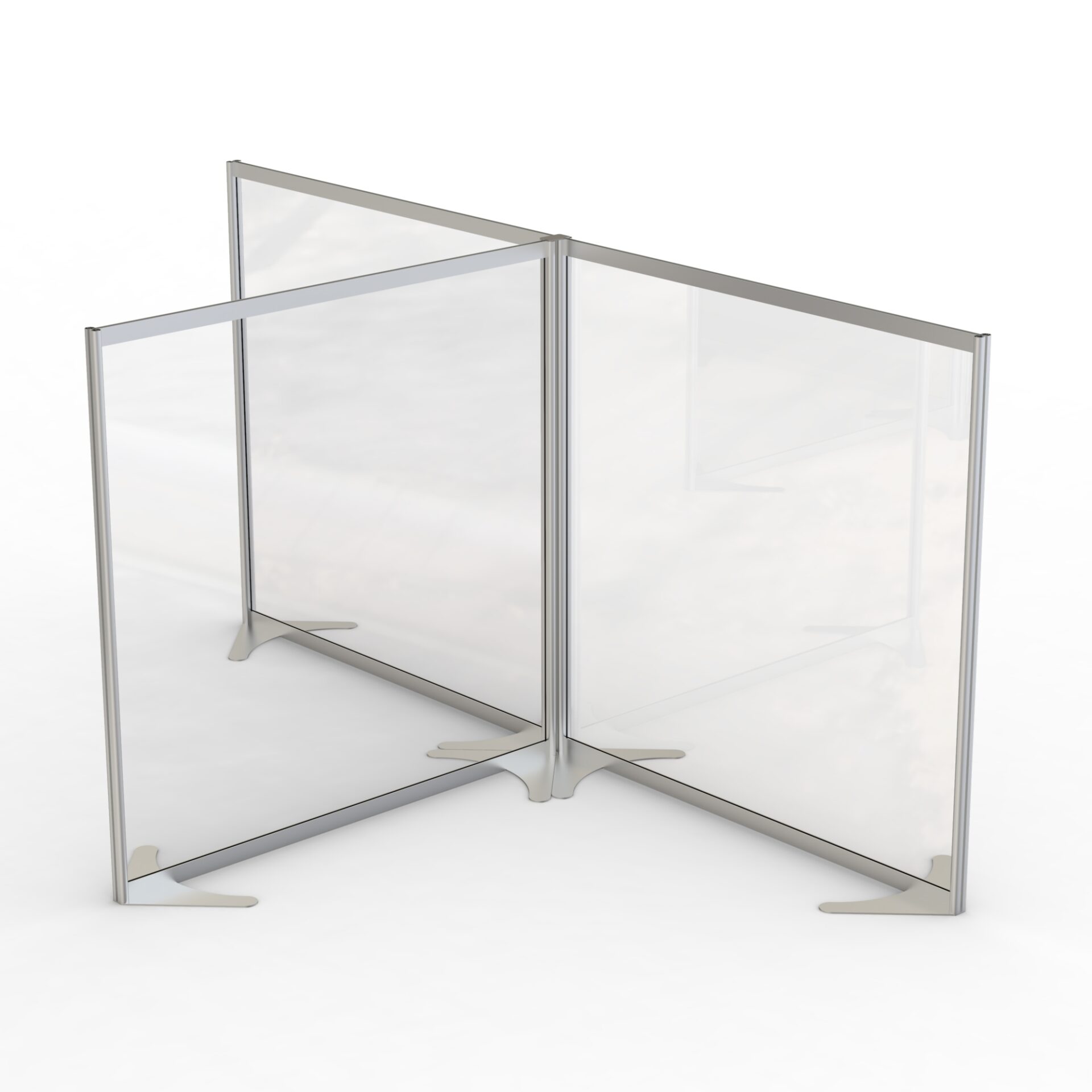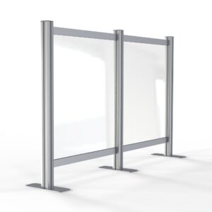 These Protective Screen Dividers include aluminium profiles and a heavy base. Additionally, they enable different configurations with different feet and connection profile options.