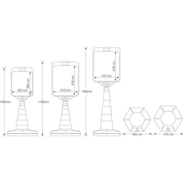 We offer three different sizes for this traffic sign 1085 mm. , 1180 mm., and 1385 mm. in height. Also, printing area dimensions depending on the sizes you choose. Finally, you can check the size table above for more detailed information.